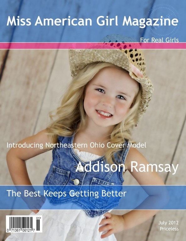 Then vie to be one of our Miss American Girl magazine Cover Girls. If your photo is selected, your photo will be featured on the cover of the Miss American Girl Pageant magazine. The prize packages include a fabulous trophy, cash award or pageant fees off.